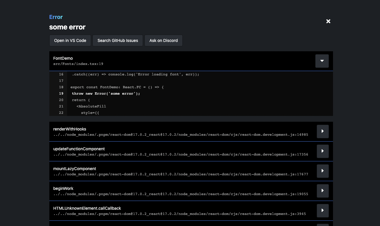 Recently, we broke the error overlay that pops up when your code contains an error. This is now fixed and we went deeper than ever before!