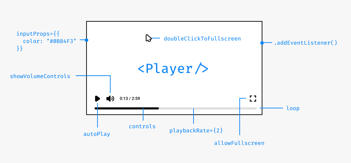 The <Player /> component now supports the new spaceKeyToPlayOrPause prop to toggle the video playback. We designed it with focus management in mind so it behaves well when multiple players are on the same page. This prop is by default true.